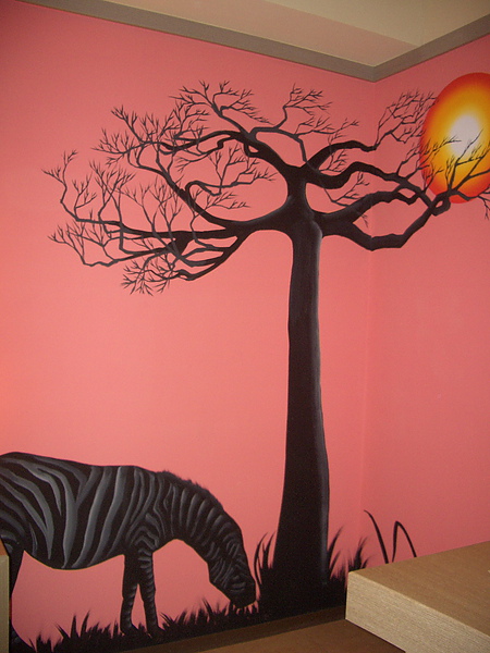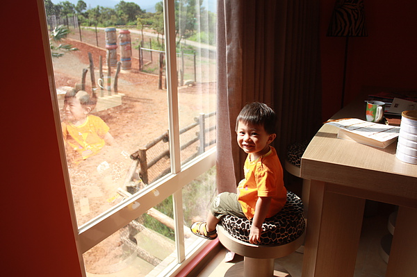 清晨,跟小子說...起來看長頸鹿囉~斑馬已經起床了....抱著他到窗前,小子的精神立刻回復飽滿~