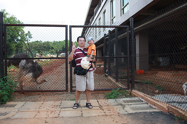 第二天用過豐盛的早餐後,我們走出旅館,外面的駝鳥還沒跟他打招呼呢!
