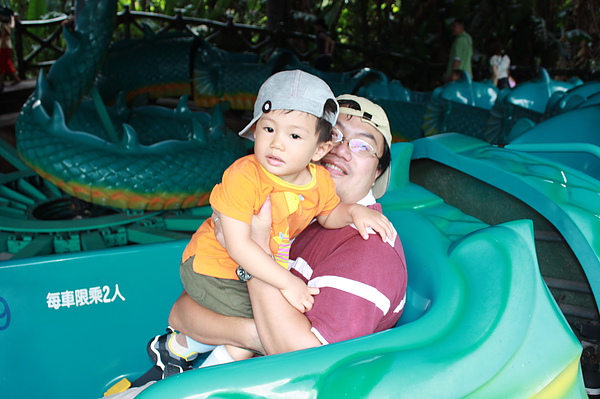 挑戰這座飛龍,會不停繞圈,速度有點快~還好時間不長,小子沒哭,但想掙脫~