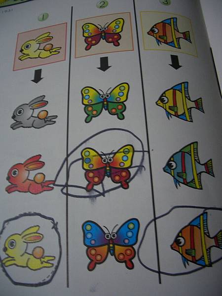 可以猜的出來....圈蝴蝶的那個應該是自己圈的~白兔則是阿嬤有扶他的手畫的~