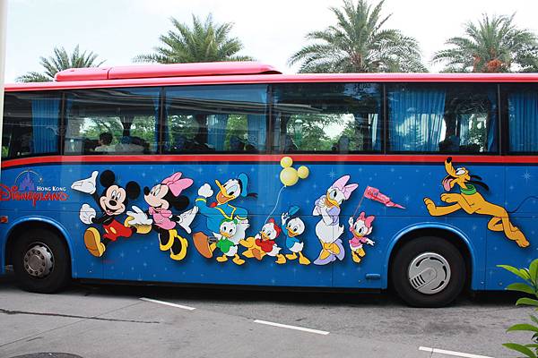 這個是穿梭巴士,不停的來回三個點,順序是迪士尼樂園酒店→好萊塢酒店→迪士尼樂園,班次也很多,出了酒店在左方有候車亭~
