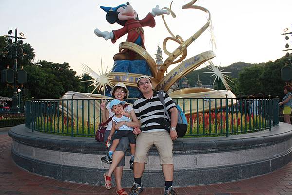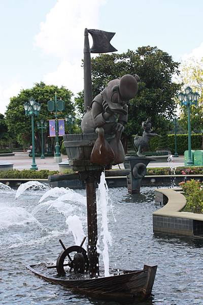 這個噴水池很大,除了中央有米老鼠會上下動之外,外圍也有許多卡通人物雕像,不過大家還是喜歡聚集在前面啦~~
