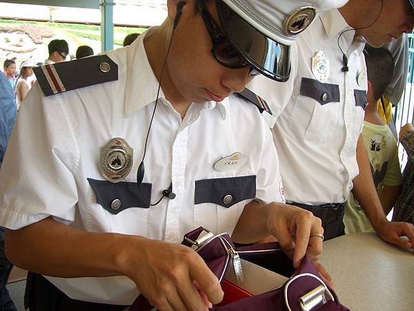 進入園區的速度很慢,其實是因為要檢查包包,可以帶水(水壺或寶特瓶,裡面有飲水機可以裝水),其他吃的食物大概不能帶~隔天進園時我有聽到人員說其實餅乾是可以帶,其他像麵包類...大概就不行,想也知道他要你進去消費的啊~~~