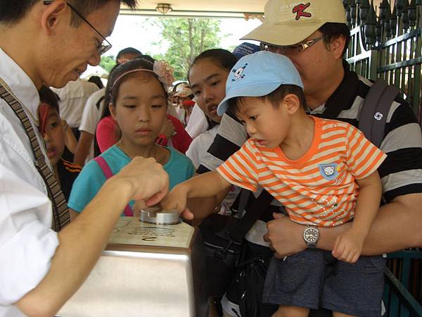樂園十點開放,從噴水池還得再走二百公尺才會到真正的入口,這裡有更多的人已經在排隊了,除了遊客之外,還看到許多小朋友整隊來玩,真幸福啊~~