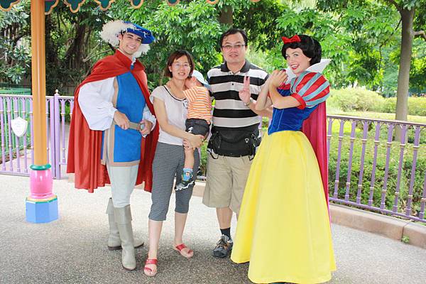 接著又看到白雪公主,由於不用排很久,也跟去湊熱鬧,沒想到小突然害羞起來,讓白雪公主覺得有點尷尬,只好草草完成這張合照,以後小子一定會後悔的~~這是難得的機會啊~~
