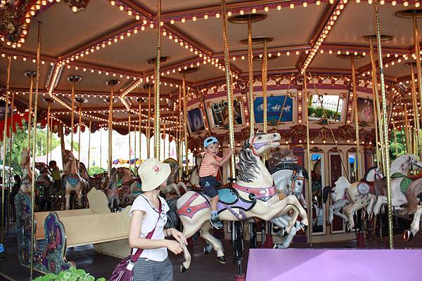我們決定從小子比較能接受的項目開始玩起~~旋轉木馬就是囉~~這次小子說可以自己坐一匹ㄟ~~真的長大了~~