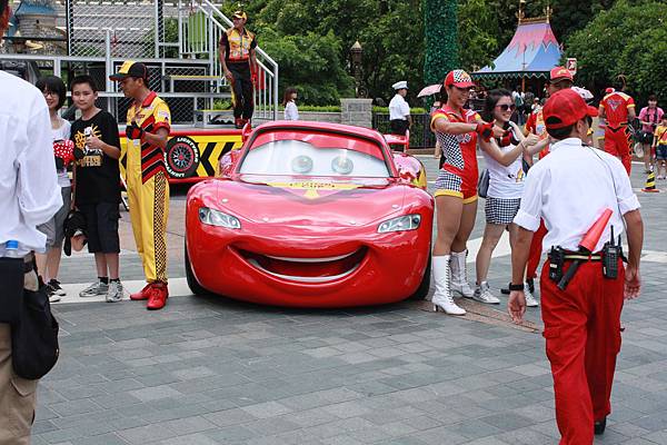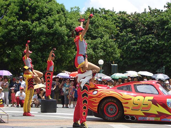 十一點半在城堡前有表演,主題是閃電王麥坤熱身賽,這個是暑假加入的主題活動~