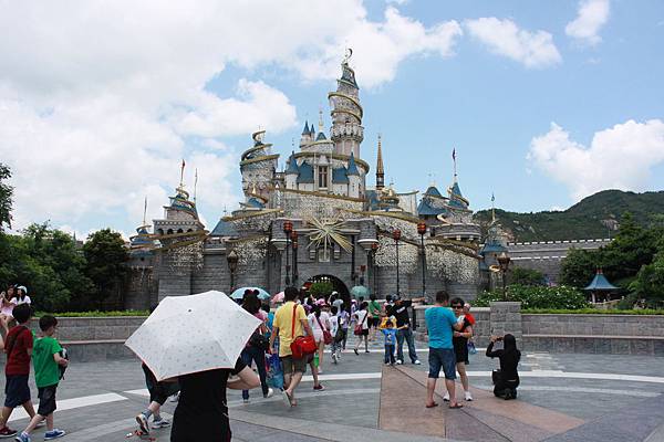從剛剛那裏要走個一二百公尺才會到這個噴水池,樂園還沒開門,這裡已經聚集了大批遊客在此等候,雖然今天是星期四,但是可能是暑假期間,所以人潮真的很多啊~~