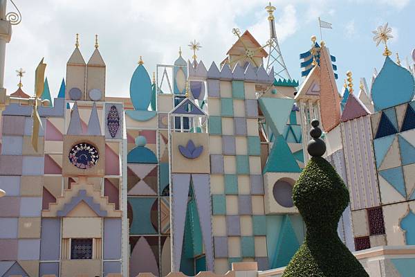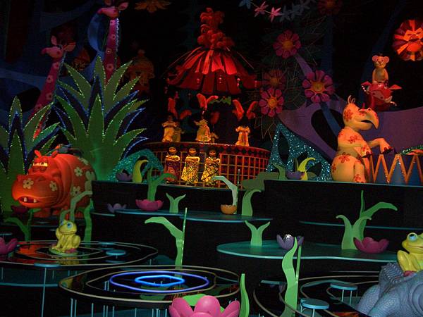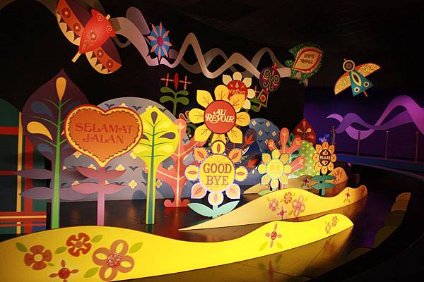 這個很適合小孩啦~~坐著船輕輕前進,兩旁有許多不同國家民族的可愛景色人物介紹,耳邊傳來的是不同語言版的小小世界這首世界名曲~