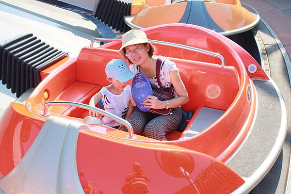 結束遊行後,我們朝"明日世界"前進~~這個是太空飛碟~~可以操縱飛碟高低...