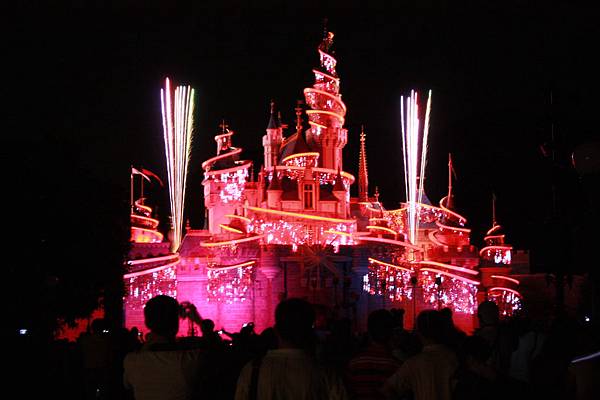 接著九點有星夢奇緣煙火表演,可惜照片拍的不好,不過說真的,這場煙火真的是值回票價~~連小子幾乎快睡著都可以被燦爛奪目的五彩煙火給喚醒....跟前一晚幻彩詠香江燈光秀,又有不同感覺~~我是比較偏愛煙火啦~~