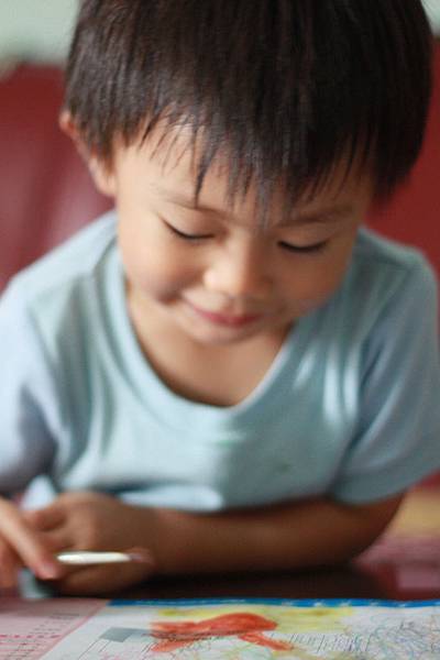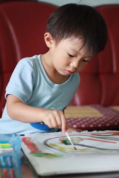 他畫的時候真的很專心,也很安靜~~真好!!