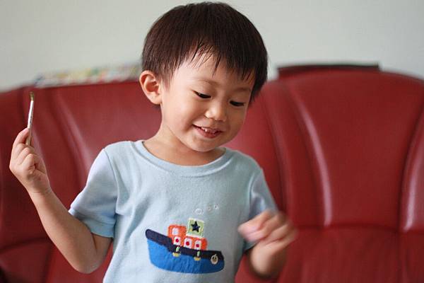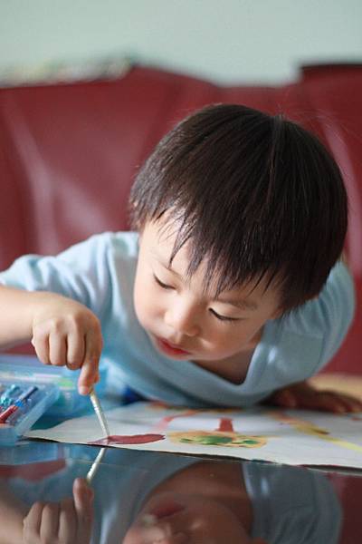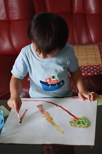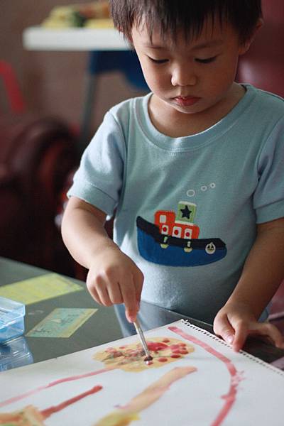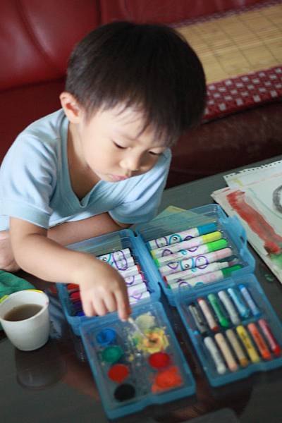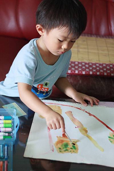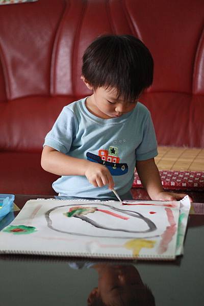 畫完兩張又跟我要紙繼續塗~~~喜歡他快樂的表情~~