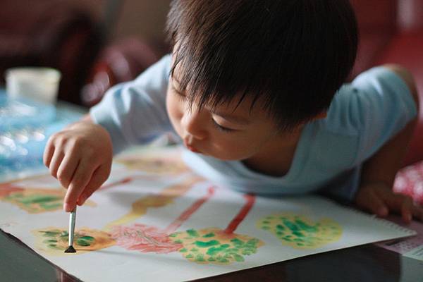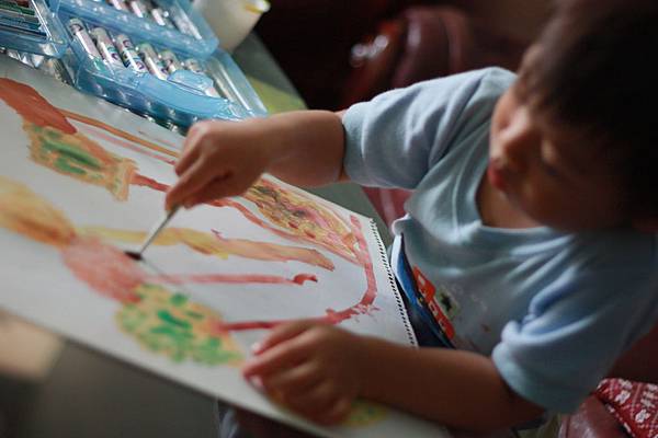 作畫神情太專注了,跟平常好動的你根本判若兩人~~