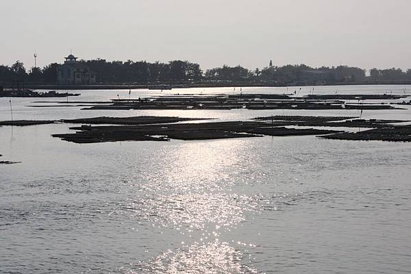 站在船上望過去有很多的蚵架~~水面上波光粼粼真是美麗~~