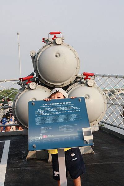 接下來上樓去,艦上保留一些武器供人參觀,我們是看不太懂啦~~就是一些砲管和飛彈等武器吧!!