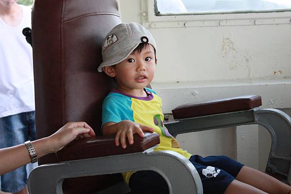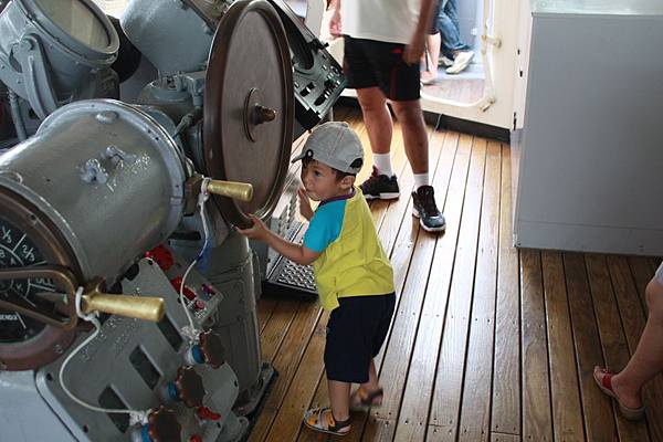 小子轉動方向盤很吃力~~你還是多吃點飯才有力氣吧~~想像自己掌舵開船的模樣,能開這麼大的船真不簡單啊~~
