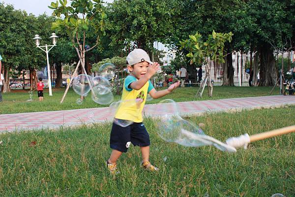 小子從頭到尾都沒休息,就是一直追泡泡~~跑的很高興~~