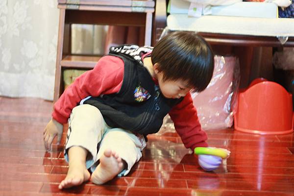 除此之外,小子很愛拿手邊簡單物品,自創新式玩法~~
