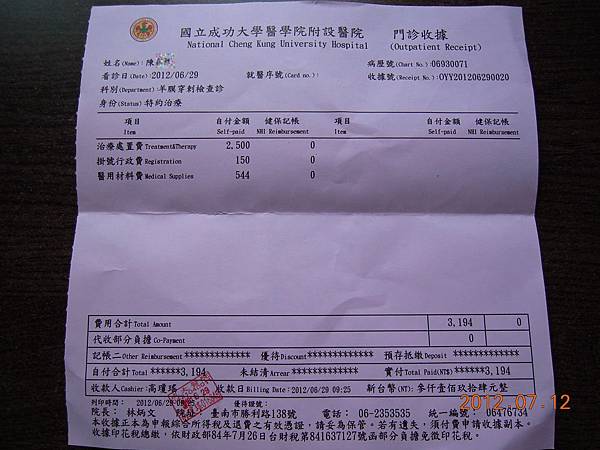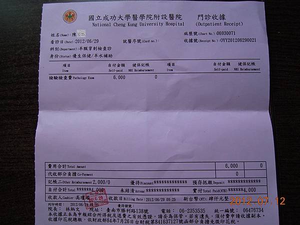 收費一共是4000+3194=7194 (已經扣掉政府補助34歲孕婦2000了) 好像每家價格不一樣~~