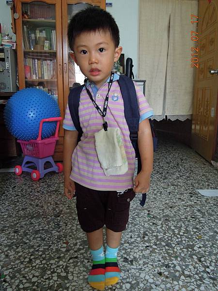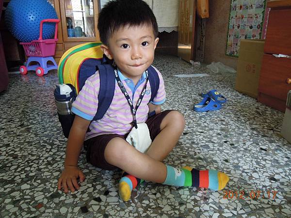 昨天老師正式拿他的書包提袋餐盒服裝,及繳費袋交給我~~意思是...他要開始正式讀一整天囉~~