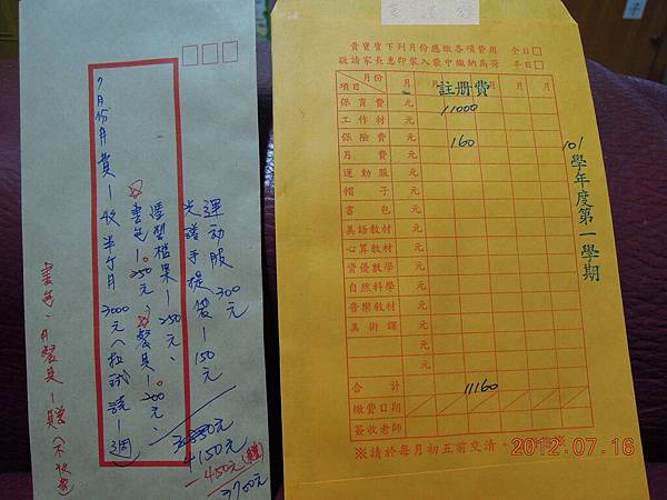 收費明細~~已經被手腳快的阿嬤拿去付掉了~~