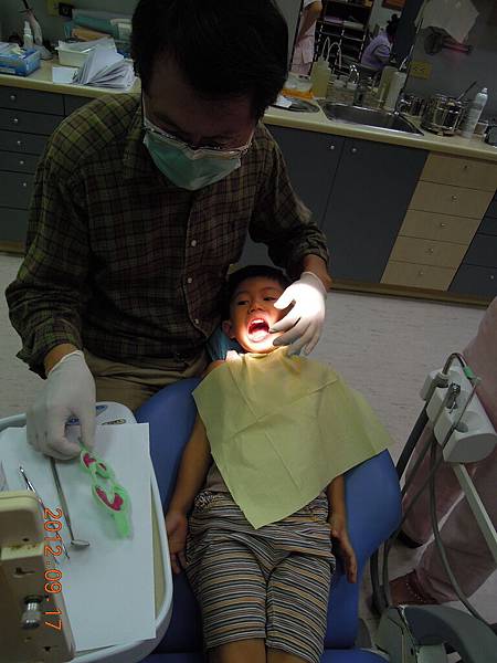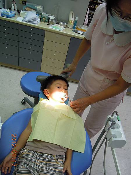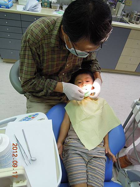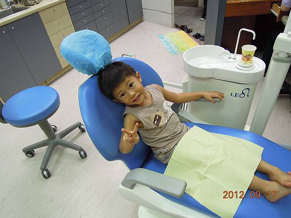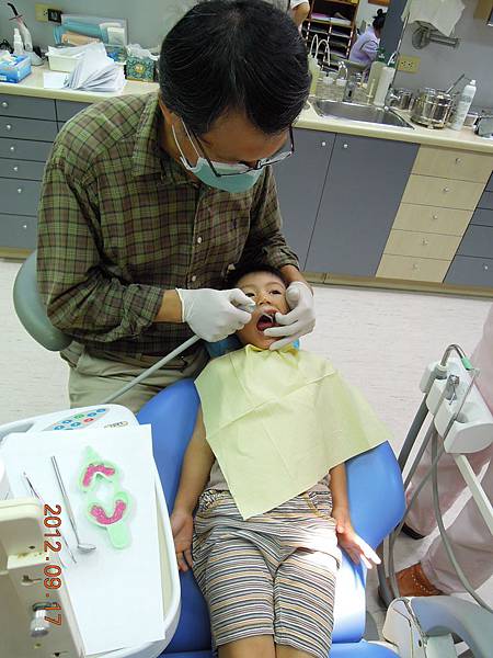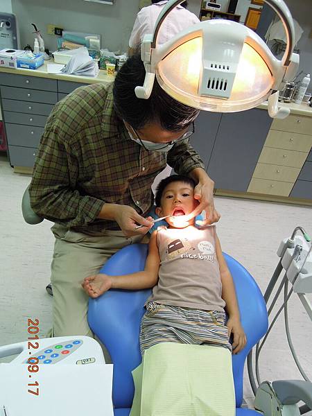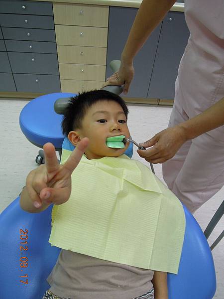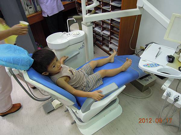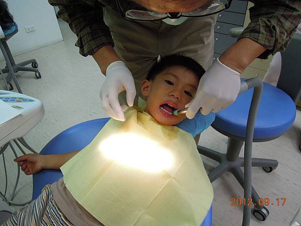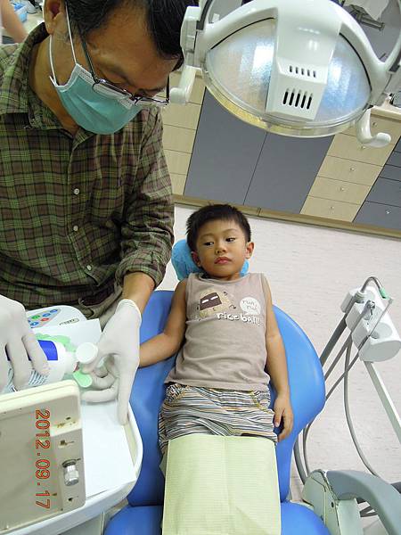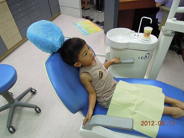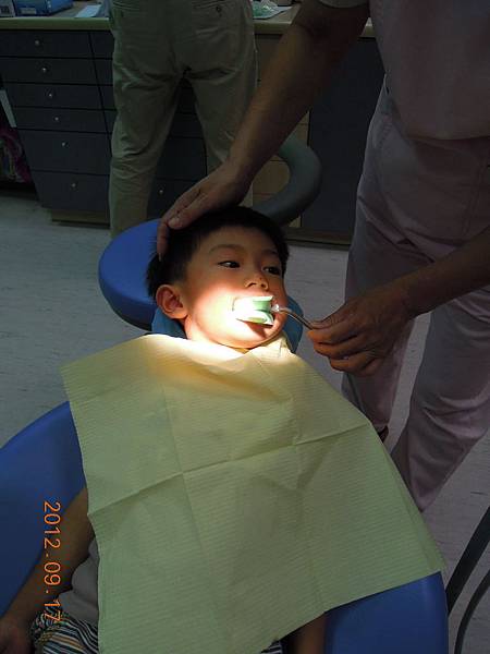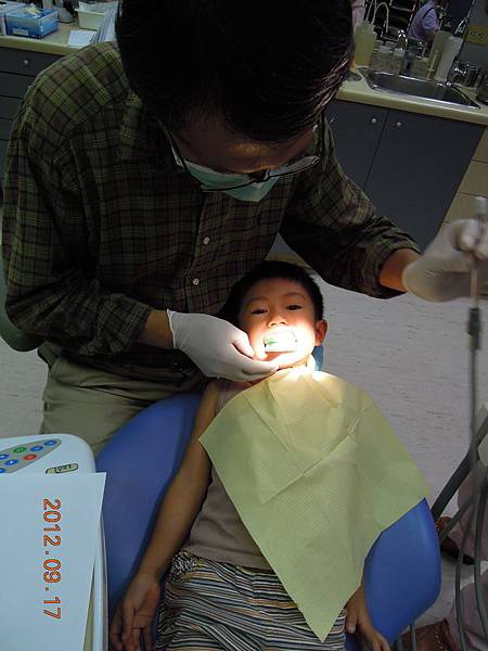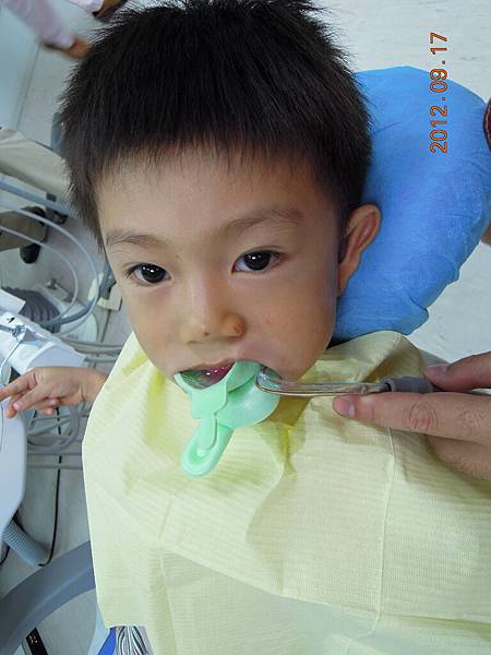 有了幾次看牙的經驗,小子看起來不太害怕~~