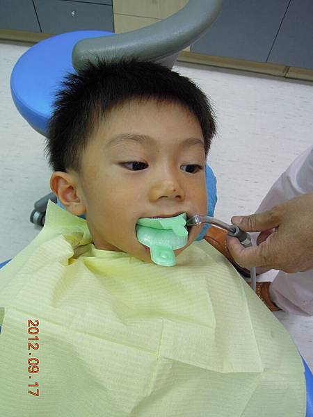 上次醫師有說他們這裡的塗氟方式是要小子咬住一個齒膜,裡面放氟,所以詢問我看小子會不會刷牙很容易吐~~