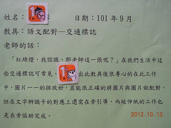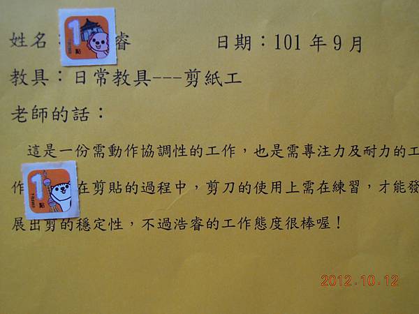 老師又發回上個月的工作記錄了~~