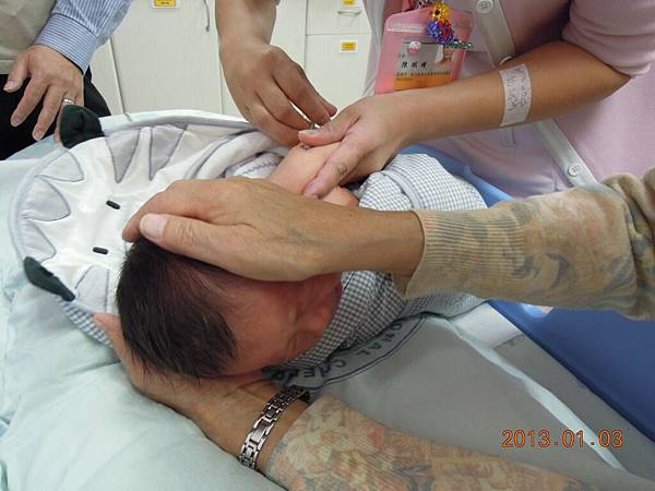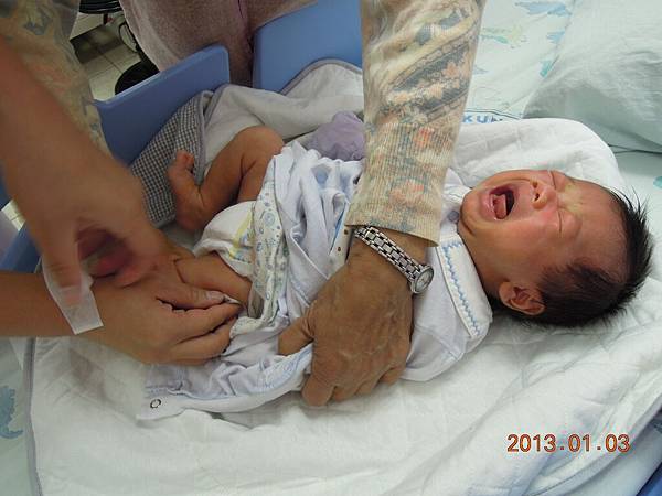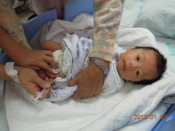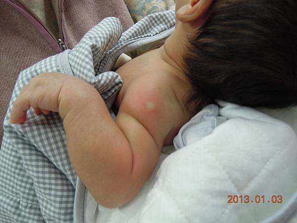 還好抱起來馬上停止~~乖~~以後你還有好多針要挨呢!!
